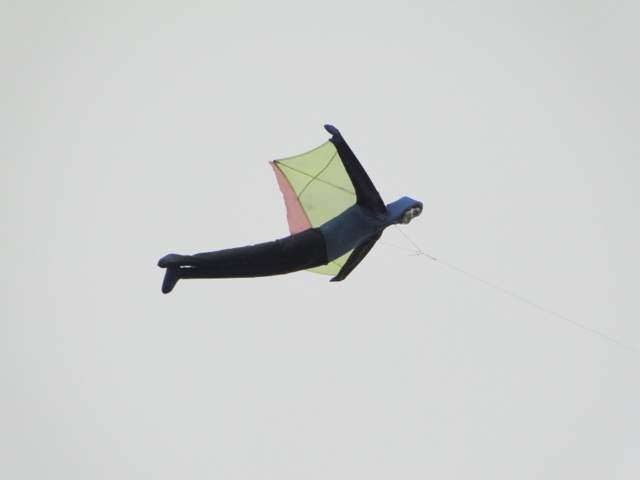 バテバテで走っていて、ふと空を見ると、人が飛んでいました(笑)。ちょっとビックリしましたが、どうやら凧のようです。利根川の土手でオジサンがこの凧を揚げていました。そう言えば、この凧の話、以前どなたかのブログで読んだような気もしますが・・・。それにしても人騒がせな凧ですね(笑)
