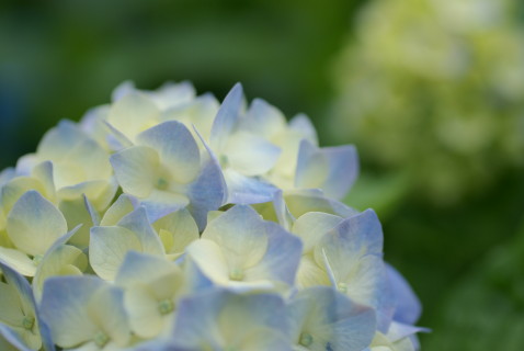 うーん、アジサイは被写体として素晴らしいですね。どう撮ろうが美しく撮れます。それと、この日は光も素晴らしかったです。曇り空から晴れ間へと変わり、雲の隙間から光が差し込み始めた、まさにその時でした。私が写真を上手く撮るには、腕よりカメラ、カメラより光の状態、光の状態より被写体がモノを言うようです。