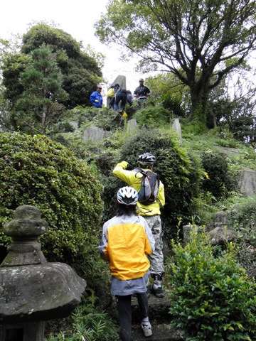 さて走り出し、馬頭観音や庚申塚などを見学をして、次は富士登山です(爆)。実は、富士信仰(富士講)から築かれた富士塚だそうですが、流山にこんなに大きなものがあるとは、全く知りませんでした。本物の富士山から岩石を持ち運んで造ったそうです。