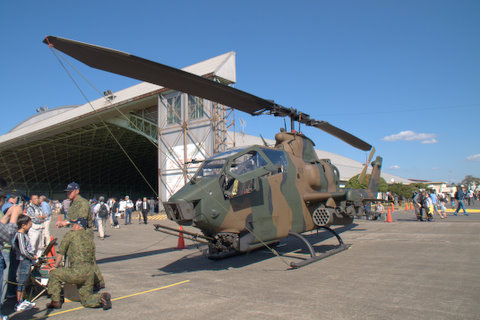 そんなお祭り状態の基地の中で、唯一物騒な兵器の展示が、この対戦車ヘリでした。確か陸上自衛隊の「コブラ」だったかと思いますが、物騒ゆえに美しく、子供たちに大人気でした。