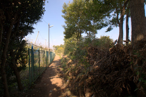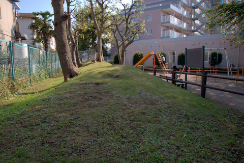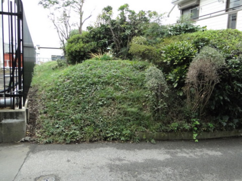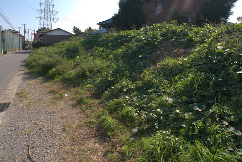 それが、この土手です。児童公園の土手を南東方向に延長した線上に、こんな道がありますが、その道に沿って2カ所残っていました。そのうちの1つは、鉄塔の敷地内となっていますので、おそらく壊されることはないでしょう。