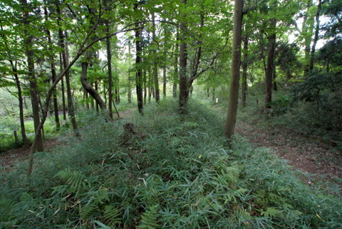 行ってみると、土手は思いのほか保存状態が良く、しかも小道に沿って点々と残っています。それにしても、この小道が凄い。道とも思えないような細さです。これじゃ、地元の方でない限り、なかなか発見できませんね。