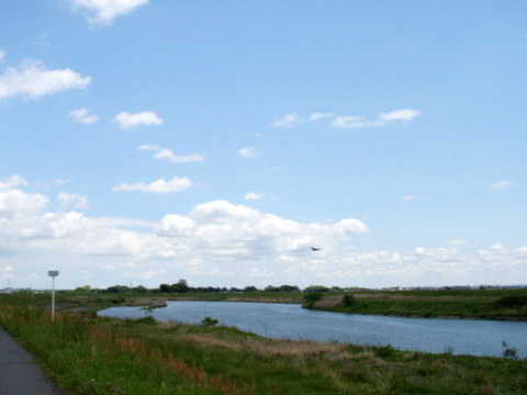 「おお、行かなきゃ」ということで、IKAWAさんをメールで誘ったら音信普通。後で聞いたら、メーラーにスパムメール扱いされていたようです。仕方が無いので、一人で出掛けました。そうしたら、本当にすごい田舎。写真は高根川あたりですが、もう呆然というか、嬉しくてニンマリです。