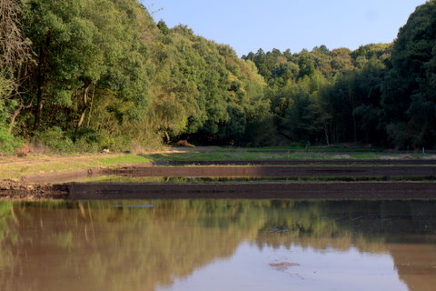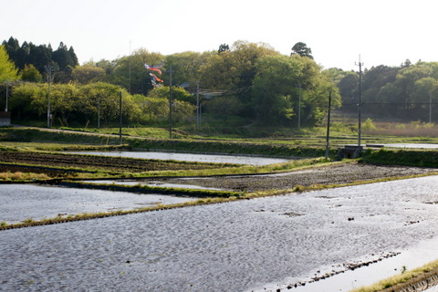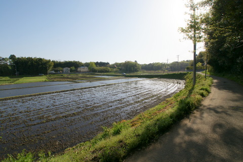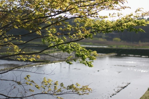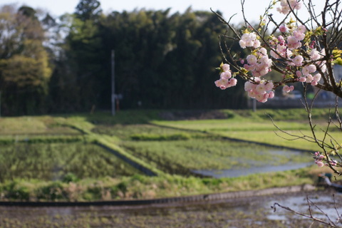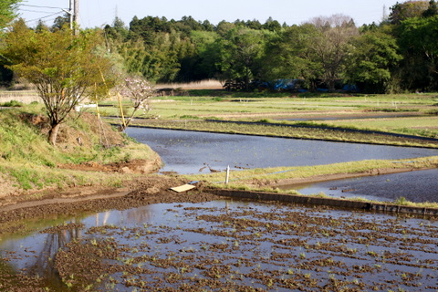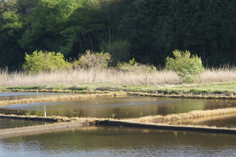 祝日の木曜日、水が入った谷津田の風情を堪能してきました。水の入った谷津田は桜や菜の花と共に、私の大好きな春の景色です。なんせ水面に映る斜面林の緑や空の青が、はっとするほど美しい。稲が植えられると鏡のような水面は消えてしまうので、この時期のほんの一瞬だけの楽しみです。