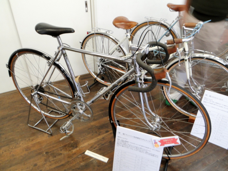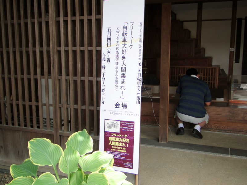 フレームビルダーのフリートークとあって聞きに来た方々の自転車がすごい。ランドナーなど往年の自転車が勢ぞろいです。普段、ロードバイクやMTBを見慣れた私には、とても新鮮でした。それに、いつもの一茶双樹記念館とは全く違った趣で面白かったです(笑)