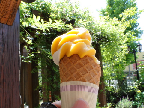 ここで注文したのは、ミルクとマンゴーのソフトクリーム・ミックスです。ミルクとマンゴーなんて合うのかなと思っていたのですが、なかなかお味でした。いやぁ守谷、恐るべしですね。