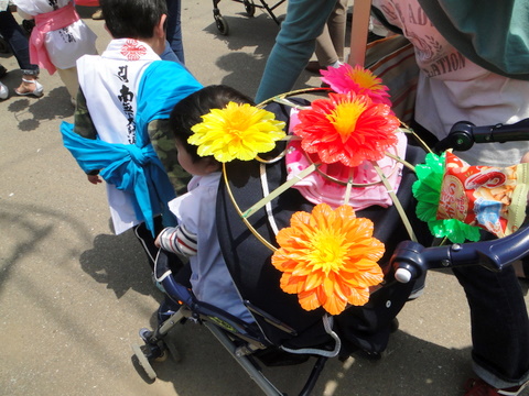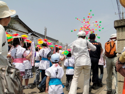 そして、その後から子供たちの一団がやってきました。花笠(?)を被った子供たちは、とてもキュートでした(笑)
