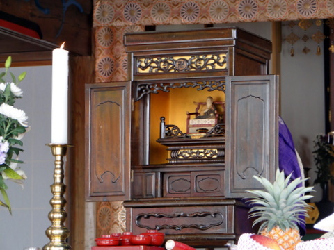 その大師像が寺院の中に納まり、皆さんが般若心経を唱えて無事結願と相成りました。この後は、感謝状や表彰状の贈呈、皆さんの挨拶、そして結願区の引き継ぎなどが行われた結願式でした。ちなみに、今回の結願区は箕輪とお隣の五條谷が務め、来年は柏市の高柳が結願区になるそうです。