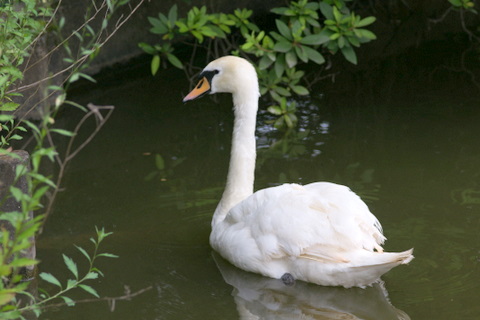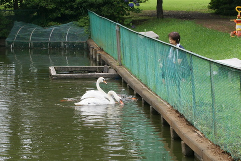 蓮池の近くの池では、2羽のハクチョウがノンビリ。それにしても、ここのハクチョウは人に慣れていますね。人からもらったエサを池の鯉と争っている姿には、少し和みました(笑)