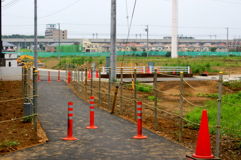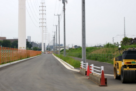 ところで理窓会記念林自然公園へと向かうべく、いつものように富士見橋から流山おおたかの森駅へと抜ける道を走っていると、見覚えの無い道があるではありませんか。この辺りなのですが、どうやら今建設中の巨大道路につながっているようです。