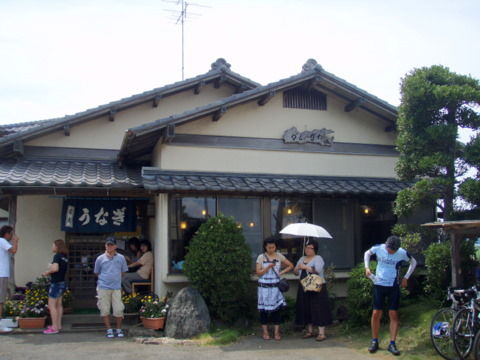 そのままポタと言うことで、印旛沼で鰻を食べようということになりました。途中、みっちーさん、packetさん、たすけさんは離脱。残りの5人で「い志ばし」を目指しました。ところが、11時過ぎに「い志ばし」に到着したのですが、既に長蛇の列。最近、TVで取り上げられたそうで、人気がさらに高まったようです。