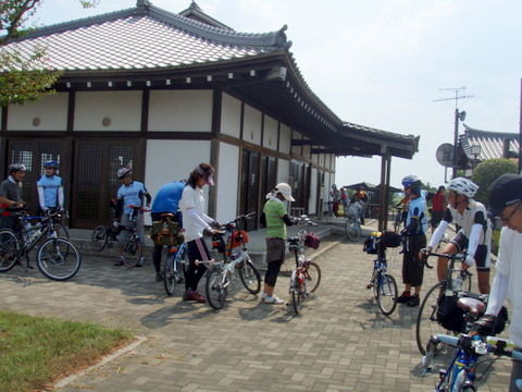 で、関宿城、いつもの場所でいつものウンチクです(笑)。これで、さふらんさんをはじめ何人かの方は、関宿初制覇ですね。この後、関宿城の休憩場で少し涼んで、利根川の向こう側、境町の蕎麦処「喬楽」に向かいました。