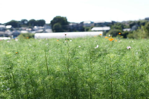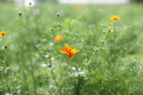 さて、この富士川の近くにコスモス畑(?)があります。コスモスが咲き乱れる情景はそれほど好きではありませんが、今は花の咲き始め。とても可憐でよいです。