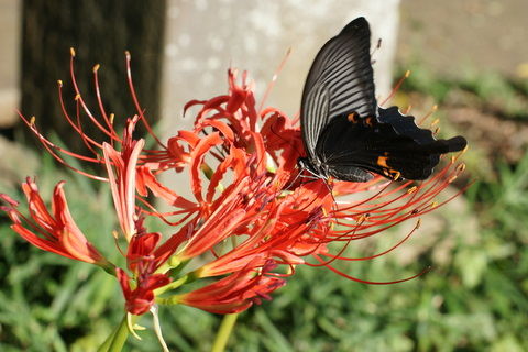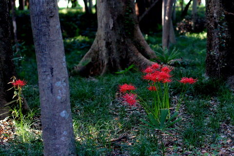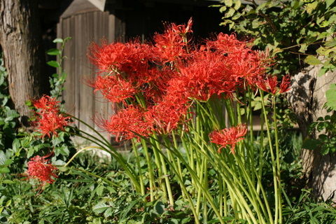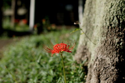 彼岸花って、実はあまり好きではないのですが、神社の境内でこの花が咲くと、境内の雰囲気が変わりますね。「何かいる」という感じが高まります。それをモノノケと言おうが、神と言おうが、単なる妄想と言おうが何だってよいのですが、普段にはない気配が満ちている感じです。うーん、彼岸花、恐るべし。