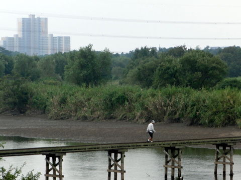 さて、小貝川を上流に走り、久しぶりの沈下橋。川が増水すると水没するので、この名がある木製の橋ですが、今回はご覧の通りです。やはりこの夏、雨がほとんど降らなかったせいでしょうか。