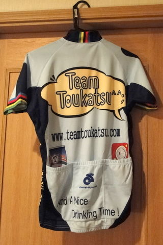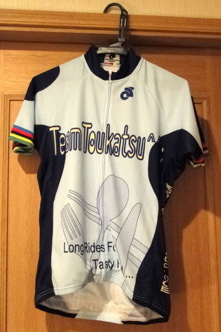 この前の日曜日、チーム東葛のニュージャージを受け取りました。前回のジャージと同様、素晴らしい出来栄えです。特に今回は、ゆるさが全開で、他のサイクルジャージに無い個性が素敵です(笑)。はんぞうさんをはじめジャージ製作委員会の皆さま、ありがとうございます。