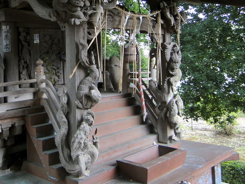 まず、守谷市にある石神神社を訪ねました。パンク大魔王退散を祈願するためとのことですが、行ってみてビックリです。祠には見事な龍の彫り物、そして周りを取り囲む見事な・・・まあ、豊穣と子孫繁栄を祈る素朴なシンボルと言いましょうか・・・とにかく立派なモノばかりでした(笑)。