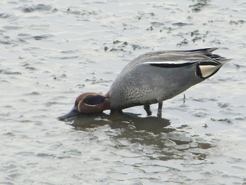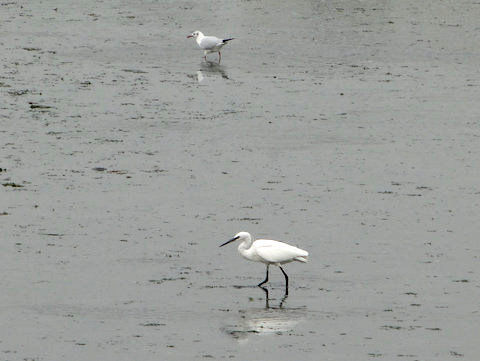 で、久しぶりの谷津干潟。ウミネコ、コサギ、コガモ、ヒドリガモ、ハマシギ(以上、識別できた鳥)など野鳥がわんさかいて、皆さん、お食事中でした。谷津干潟は「特に水鳥の生息地として国際的に重要な湿地に関する条約」(ラムサール条約)の登録湿地で、月並みな言い方ですが、まさに野鳥の楽園ですね。