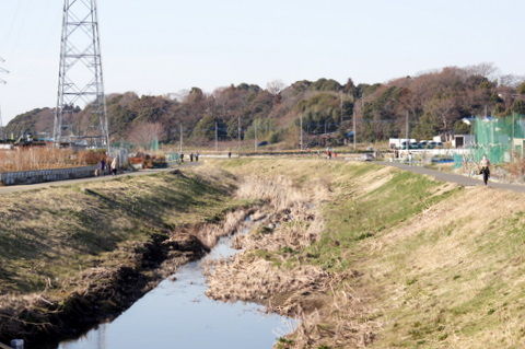 意外にお勧めは、大津川から南柏に抜ける、かつての谷津の道です。柏レイソルの本拠地、日立柏サッカー場の南側をくねくねと細い道が続いています。