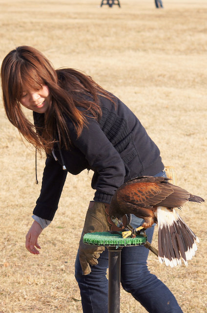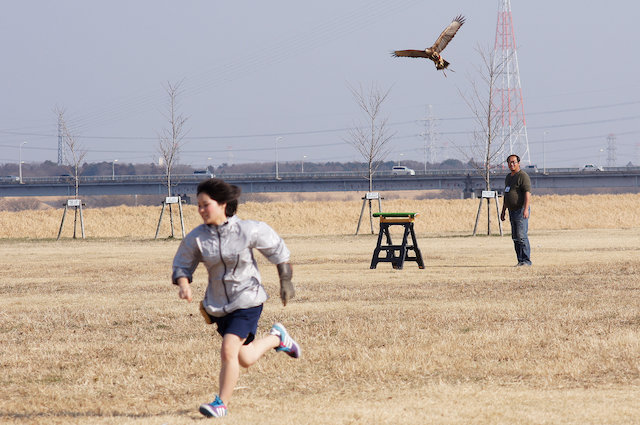 日曜日に関宿城で開催された「フライトフェスタ2011」に行ってきました。この催しは国内最大級の猛禽類イベントだそうで、現代の鷹匠(鷹の飼い主)さんが自慢の愛鳥を連れてきて、タイムトライアルなどを競うお祭りです。