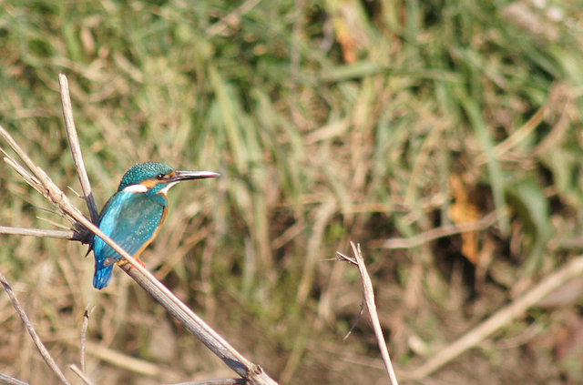 で、土曜日はポタも含め何もせずに、おとなしくしておくことにしました。でも、この素晴らしい天気でしょう。我慢できなくなってきたので、住処の近くの富士川方面を散歩。もちろん、デジイチを抱えてです。そうしたら、小さな青い鳥が川面をすぅーと・・・。
