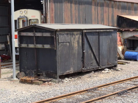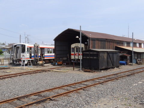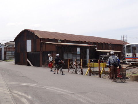 案内されたのは、このみすぼらしい建物。「なんじゃ、こりゃ」と思ったのですが、鉄ポタさんによると、これは50年くらい前に建てられた機関庫だそうです。なるほど、この手の建物は、教えてもらわないと価値が分かりませんね。