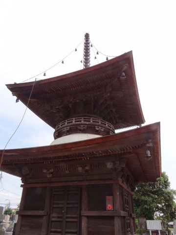 そして、これが多宝塔です。来迎院という寺にある国の重要文化財で、室町時代後期の1556年に建築されたそうです。多宝塔とは仏塔の建築様式で、面白い形をしています。