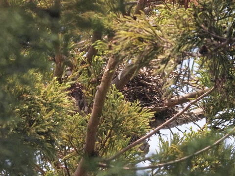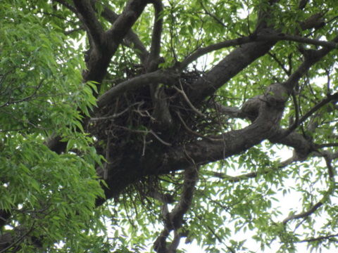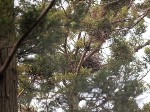これは、今回初めて見ました。カラスの巣です。日本でカラスと言えば、ハシブトガラスとハシボソガラスが二大勢力ですが、この巣はハシボソガラスの巣だそうです。この巣は、鳥の博物館の近くの香取神社の境内にありますが、ここはちょうどハシボソガラスとハシブトガラスの勢力圏の境だそうで、毎日のようにこの巣の近くで、両者のバトルが続いているそうです。