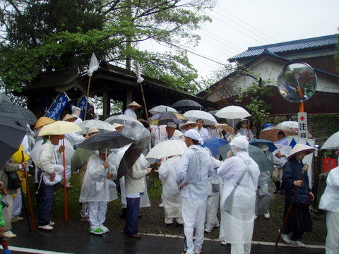 なんで、その送り大師に同行したのかというと、東京に住む友人とその友人が送り大師をぜひ見てみたいと希望したからです。送り大師は毎年5月1日から5日にかけて行われ、最終日5日の結願の日がメインイベントです。ただ二人は今日3日しか来られないということで、雨の中、友人の車で出かけました。