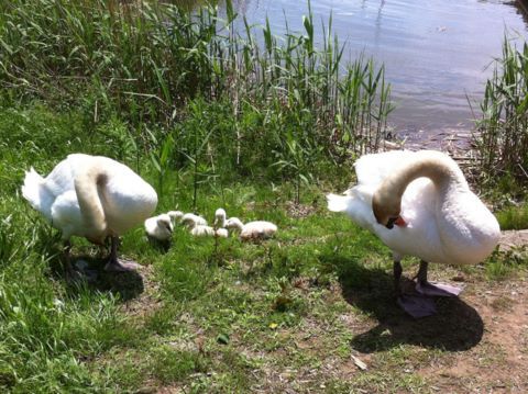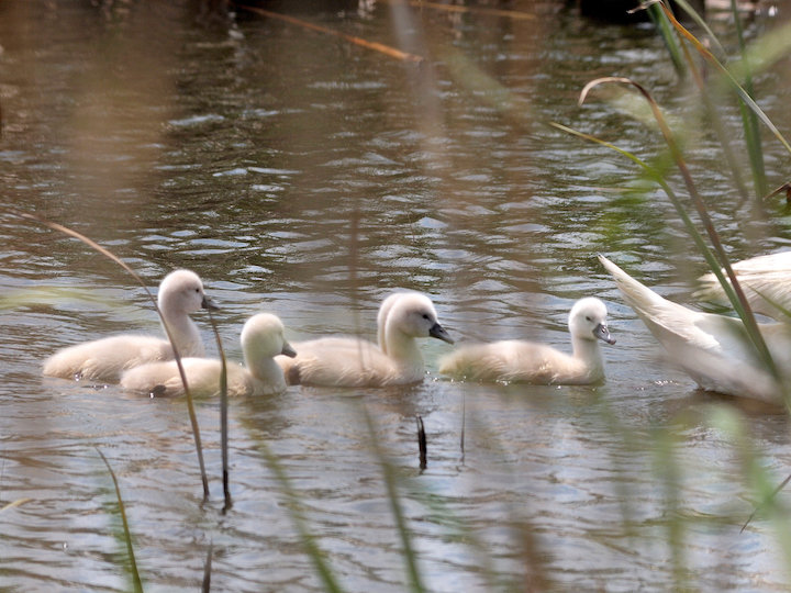 一番下の写真はコブハクチョウの巣ですが、生まれたヒナたちのうち、虚弱でなかなか巣から水に降りられないヒナは、親鳥が嫌って、クチバシで突いて殺してしまうそうです。やはり、コブハクチョウも厳しい野生を生きているんですね。