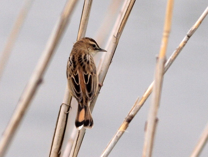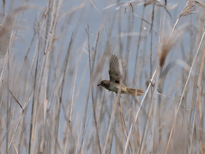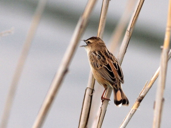 この前、初めて見たセッカも、今回のポタで簡単に出会えてしまいました。手賀沼CRを走っていると「ヒッ、ヒッ、ヒッ」という鳴き声。セッカが飛んでいるなと思っていたら、「チッ、チッ、チッ」という鳴き声に変わりました。間違いなくセッカです。