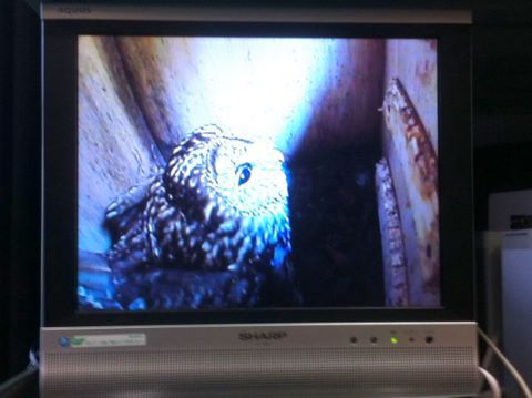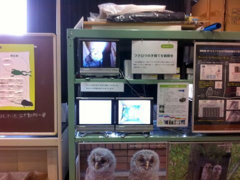 実は、鳥の博物館の裏山にはフクロウが住んでいるそうで、博物館が架けた巣箱で今フクロウが抱卵をしています。それをテレビカメラでリアルタイムに見ることができました。これは、かなり感動でした。
