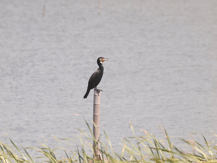 ところが、肝心の被写体がなかなか見つからない(苦笑)。仕方がないので、50mほど沖の杭に止まっていたカワウをパチリ。約50mの距離で、これくらい写るのだから、やはり問題無さそうです。