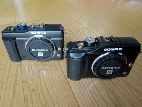 上の写真で右のデジカメが今回買ったE-PL2です。E-PL1sに比べて液晶が大きくなり、高級感も少し増しています。ただ私の好みから言うと、E-PL1sのデザインのほうが好きなのですが、まあ安いので、どうでもいいことです。デジボーグのパーツとして、酷使に耐えてくれれば、それでOKです。