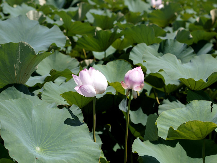 ということで、手賀沼の蓮で試してみました。撮影した時はまさに炎天下。下の写真、花が白飛びしていますが、それでもF2.8まで絞って4000分の1のシャッタースピードでした。