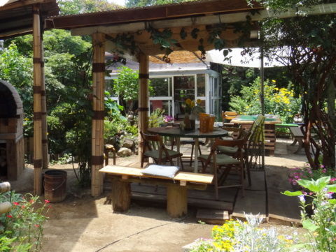で、メインイベントの「マツムシコーヒー」です。松虫寺の横に、こんな素晴らしいカフェがあったんですね。周りが全て緑に囲まれていて、本当にリラックスできます。大人数のため外での食事となりましたが、緑に囲まれた土の上のためか、そんなに暑さも感じませんでした。