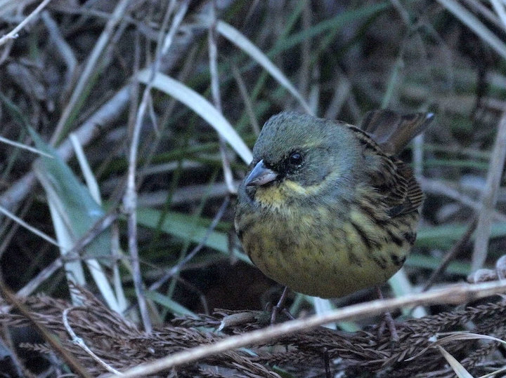 さて、問題はこいつ。最初はアオジと思ったのですが、なんか違う気もします。カシラダカなら初撮りですが、うーん、よく分かりません。