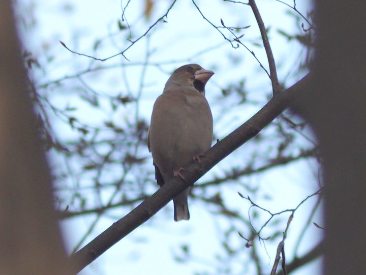 この日の「初撮り」はこれ。ようやくシメを撮影できました。ベーシックな冬鳥でどこでも見られるはずなのに、私がなかなか出会えない鳥が何種類かいます。シメもその一つでしたが、ようやく出会えました(喜)。それにしても、ヤマガラはいずこ(苦笑)