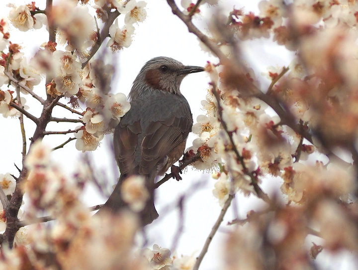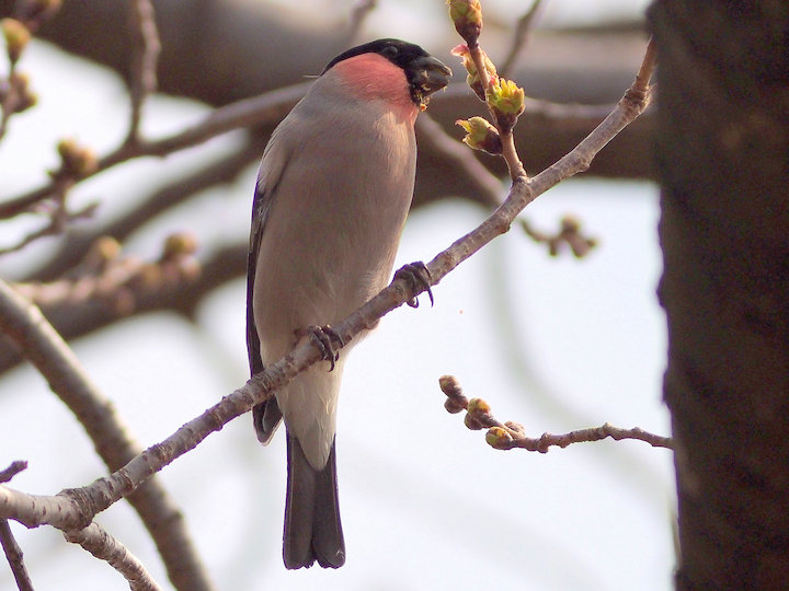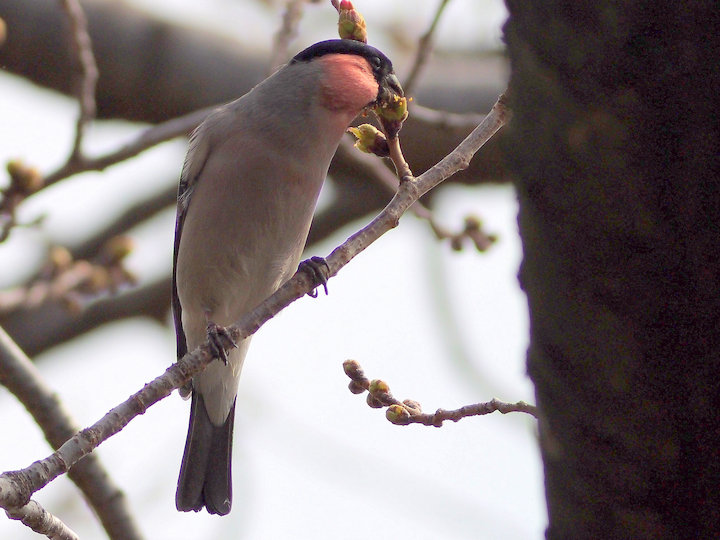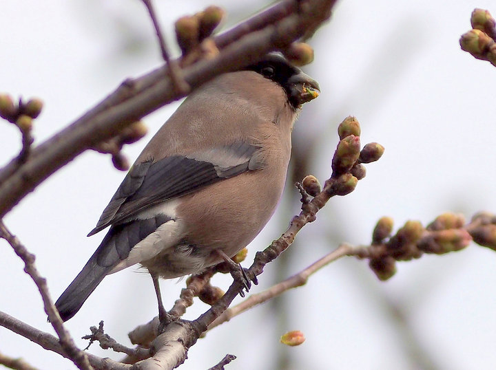 P3170233[1] そして、こちらがメスのウソ。彼女も口に詰め込める限り、つぼみを食べ続けています。木にとって、野鳥は受難のようですね(笑)