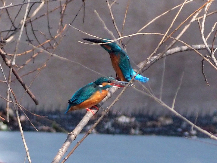 P3170208[1] カワセミの求愛給餌の写真が撮れました。場所は、水元公園の「かわせみの里」です。餌の魚が写っていると完璧だったのですが、贅沢は言いません。もう嬉しいです。