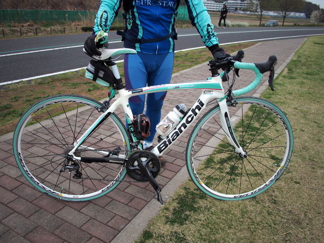 ABianchさんは今井の桜を見ての帰りとのことで、しばし歓談しました。そして、「ぜひ今度一緒に走りましょう」と約束させていただきました。ABianchさん、よろしくです。