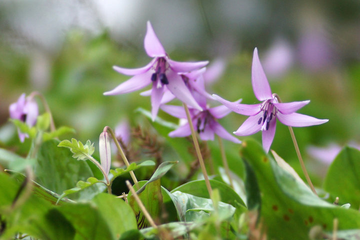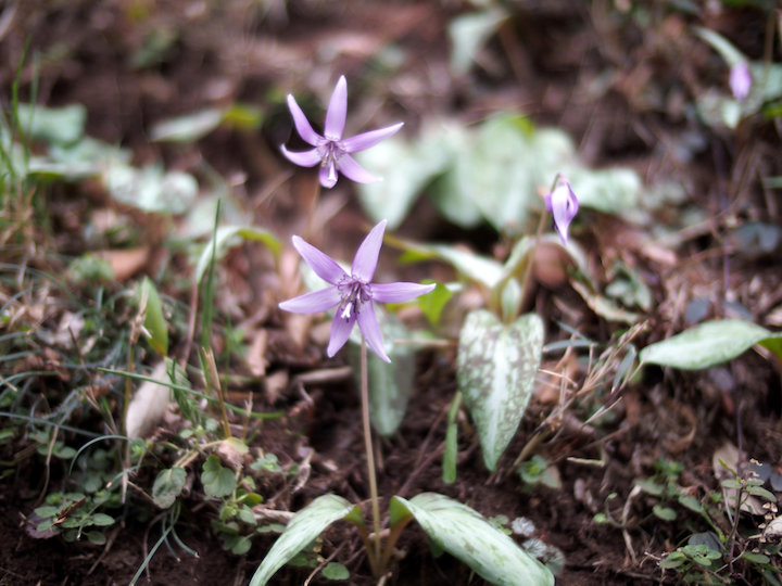 さて、カタクリの群生地ですが、まだ少し時期が早かったようで、花はまばらでした。人出もチラホラ。年配のカメラマンの方が数人いるだけでした。一昨年に訪れたときは大賑わいでしたので、随分寂しく感じられました。