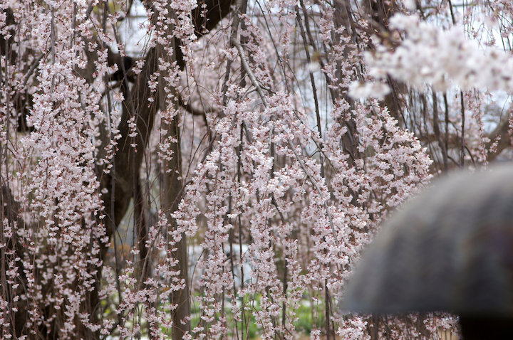 で、春の花の主役、桜はというと、今年はあまり見て回りませんでした。ただ、カタクリの群生地に出発する前に、住処の近くの清龍院の枝垂桜を堪能しました。この枝垂桜はこの日が満開。ちょっと花の数が減っているようなのが心配なのですが、いつ見ても見事なものです。