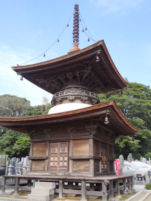 しゃりまに向う途中、せっかく龍ケ崎に来たので、はんぞうさんを多宝塔にご案内。来迎院という寺にある国指定重要文化財で、室町時代後期の1556年に建築されたものです。