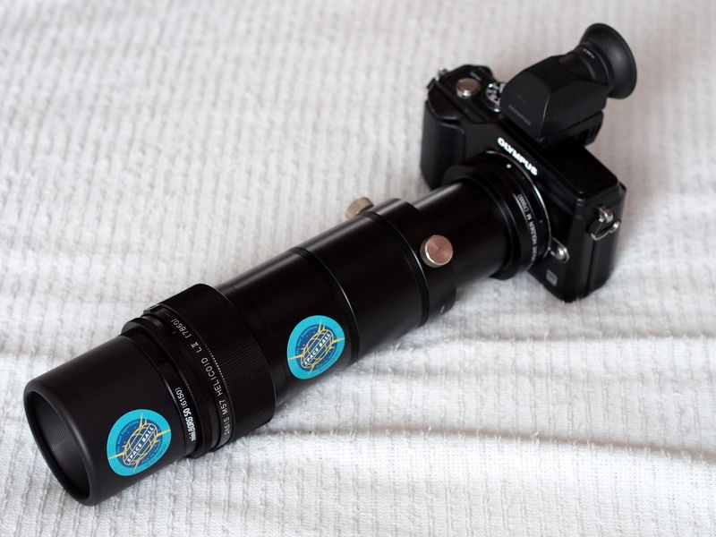 このレンズの焦点距離は250mmですから、カメラレンズ風に言うと250mm F5.0の望遠レンズです。これをオリンパスのPENに付けると、35mmフィルム換算で500mmの超望遠レンズになります。