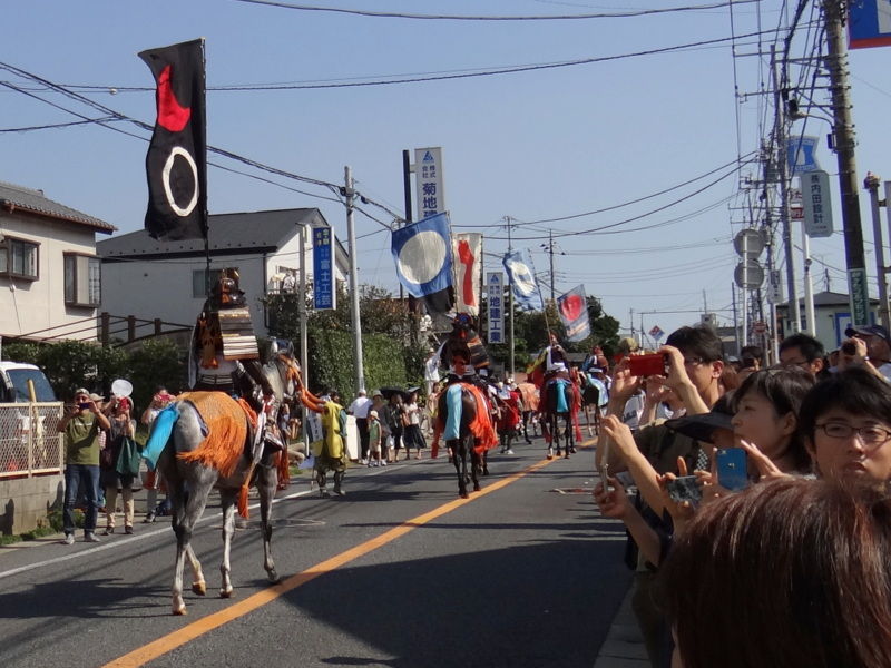 連休初日の土曜日、鎌ケ谷に相馬の騎馬隊を見に行きました。なんでも「相馬野馬追 600年振りの凱旋」だそうで、人馬12騎がわざわざ福島の相馬から「鎌ケ谷市民まつり」のためにやって来たそうです。