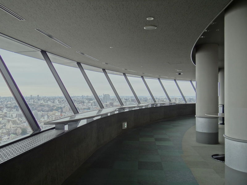 それにしても、この展望ラウンジ、高い処が苦手な私にはかなり怖いです。以前のポタで立ち寄った市川のアイ・リンクタウンの展望施設よりも、はるかに怖い。窓ガラスが斜め下向きに取り付けられているので、うっかりすると真下の地上を見てしまうからです。