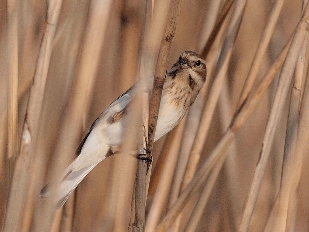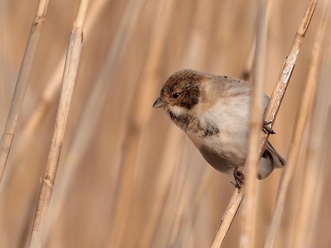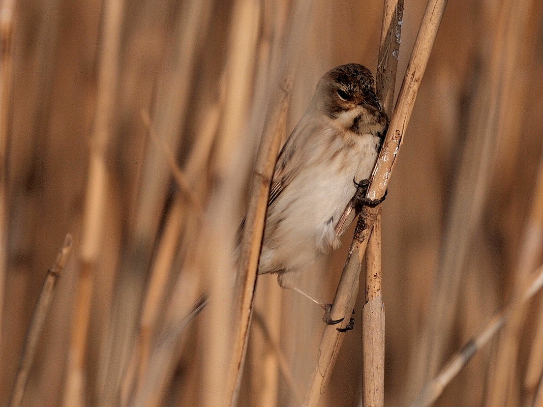 オオジュリンは頭の羽毛は内側が黒く、春が近づくにつれ、その羽毛が磨り減ることで内側の黒い部分が露出し、頭が黒く見えるようになるのです。今はその過渡期ですね。