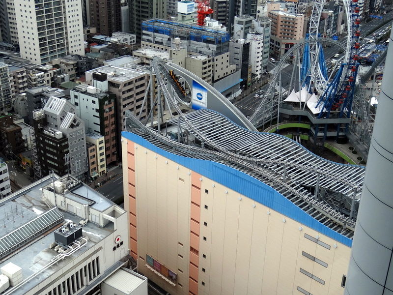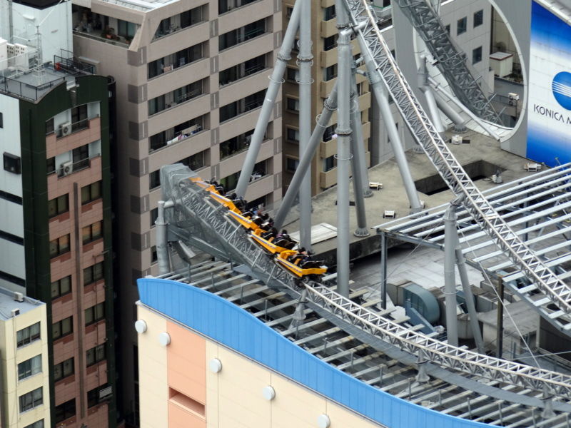 それに、ちょうど下に東京ドームシティ(後楽園ゆうえんち)が見えて、どうしてもそちらに目が行く(苦笑)。そのたびに足がぞわぞわっと(この感覚、分かりますでしょうか)。でも、ジェットコースターは地上から見ると落下角度がハンパないですが、上から見るとと平坦に見えますね。
