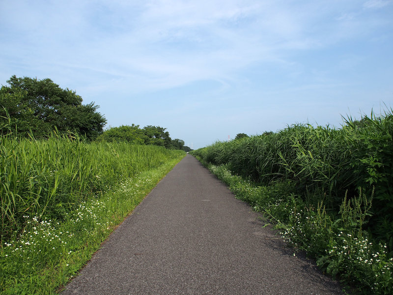 もうめくるめくような暑さ(笑)。取手の芸大下の河川敷の道は、ほぼ人影無しでした。「ここで熱中症で倒れたなら助からないな」と思いつつ、そして夕食の例のモノに舌なめずりをしながら走っておりました(笑)